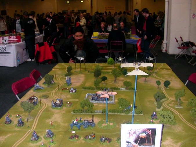 Dark-Age minis also impressed up close, and it certainly helped to see how the figures compared to each other in size! They were supposed to be giants? Jeez! The clubs and societys put on a good show as per usual, and there seemed a big WWII theme amongs the historicals. The GW fans cranked up the production values as usual with a very cool El Cid set up for Warhammer Historical's latest set. Although the scifi/fantasy presence was still poor relation to the historicals, there was a good showing from more GW goings on with two tables of Warmaster games. The frothers had good chats with several of the clubs, but were discovering as the day went on more and more tables unattended, which is a shame.