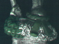 a thin snake of greenstuff. Lay this on his arm, from the shoulder to