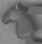 Converting Imperial Horses Imperial Horse Heads One of the main differences between fantasy and historical miniatures is the size of the mounts. Historical manufacturers seem to consider horses as a waste of lead, since they make them much smaller (see the Horse Miniature Comparison page for more on this subject). Being used to the bigger, fantasy counterparts, the current GW size seems about right to me. A major drawback is the fact that they don't have many options in their armoured horses. They still use the same two plastic variants they've been producing for years, with the sole addition of a third head variant with the new knightly order sprue. Closer examination of the new GW imperial plastics gave me the idea of creating a few head variants myself. Some are fairly simple conversions using a knife, some plastic bits and a drop of glue. Others are more complicated and will require a fair amount of greenstuff. The most basic conversion is to start from a standard armoured horse head and a plastic standard top.The knightly order sprue comes with 3 different standard tops: a skull, a panther and a wolf. Two easy steps: first, remove the spike on the horse's head that makes it look like a unicorn. Then replace it with the standard top. Voila, instant first knight or grandmaster horse head. It may sound simple, but it looks really good if you reposition the horse to rear up on it's hind legs. Easy and effective. The same can be achieved using the crests from spare imperial or bretonnian knights heads for more variety, or even other items like human skulls or whatever suitable bits you have left over from other projects.
