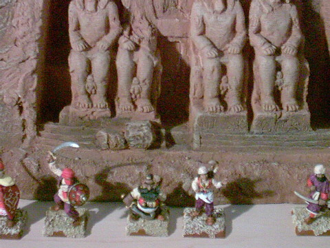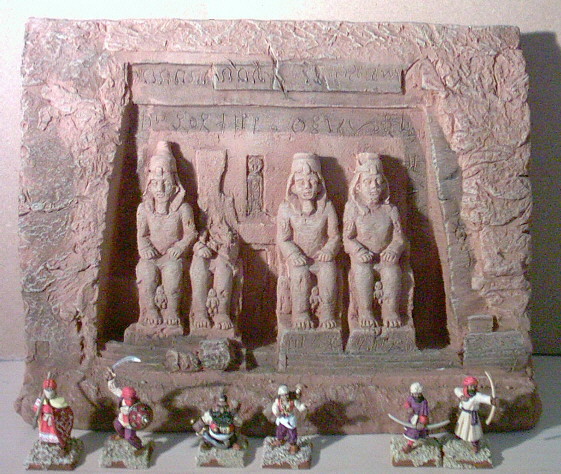 The complete model, with, to indicate scale, from left to right Gripping Beast spearman, Reaper swordsman, oop GW Arab dwarf, DSA female warrior and two Gripping Beast archers who insisted on being there.