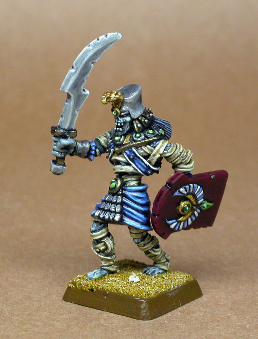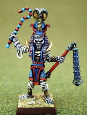The most appropriate model for our purpose is the amazing "Sophet Drahas", on his throne. The throne in itself, although impressive, is not very much in theme, but Sophet himself is clearly a Mummy Lord.