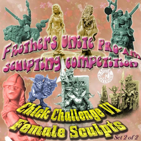 Look out for these figures in new guises as their original sculptors attempt to turn their kudos into cash dollars, and as entries in the Chick Challenge VI painting competition, as hosted this year by the team at FU!UK. The winners were as follows: John "poshgoblin" Pickford's Goblin Queen set, a powerful woman who commands respect from her followers while retaining an excellent taste in furniture. Guillaume Rieu's 'Knight's Daughter' (or 'Don't Touch Daddy's Stuff') was one of the competition's big talking points. A charming study of a girl unfettered by societal expectations, and *soooo cute*! Ebob impressed the judges with a beautiful female sculpt in a flowing dress that would look fantastic gazing over any medieval fantasy landscape. Brad Shier delved into oriental fantasy for Po-Nya and Temple Dog- one woman and her over-sized pet on a quest for enlightenment. Click on the thumbnails below to get a closer look at these beautiful figures...